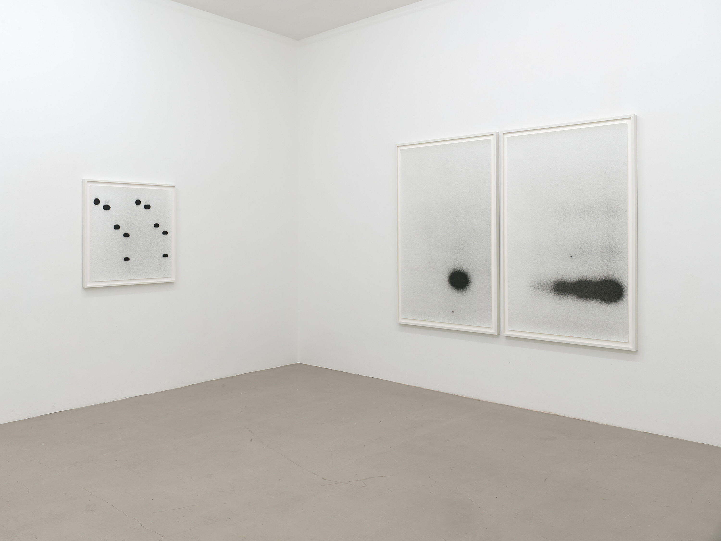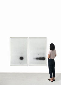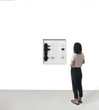 “Amidst a totalitarianism of ‘visibility’ as currency, the artist Jan Paul Evers turns to a kind of residual material that could very well ground the flickering of visual echo chambers of everyday communication. Most daily images are now being produced by machines for other machines; Evers’s first series of works entitled Apotropäische Psychotope also uses anonymous parts of DNA sequences, images deriving from a scientific, technological context. But the black-and-white passages in varying formats selected strictly according to subjective, aesthetic criteria do not reveal whether the DNA is from humans, animals, fungi, or plants. Rather, the images open themselves up in the best sense of the word. It is precisely in their closeness and evidence of bare life that the works convey a strange distance — or rather melancholy: toward a dogma of identity politics that is as omnipresent as ‘visibility’ and curiously lets the relations of aesthetics and ethics striving for the ideals of multiculturalism in fine art and beyond appear as a monoculture. Evers counters all this with the qualities of ambiguity and doubt, thus fathoming the ultra-thin space that art as potentiality in the sense of indeterminacy still inhabits. Evers originally searched for apparatuses having to do with the human exploration of the universe, along with the attendant image myths. He wound up under the skin, so to speak, with a group of works that can be understood, 30 years and thus a generation of artists later, as a perspectival reversal of Thomas Ruff’s ‘Stars’ (from 1989 onward).”