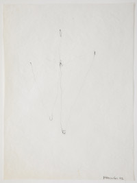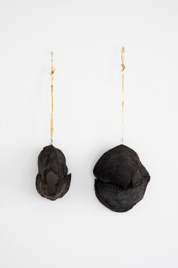 The second group of works were created 30 years later during the Covid Lockdown. Isolated at the seaside, Matalon worked in a limited space outside of her New York City studio. This lockdown was literally a break from the lively exchange with other people and normality. Matalon recognizes that the second pandemic works were much more concentrated on time, death, and the deep exploration of the heart. Matalon has long worked with the limited pallet of beeswax, paper and graphite, in her drawings, with additions of gauze, tar, and wire in her sculpture. In a process that she developed over time, Matalon treats paper with beeswax, creating a surface that records every mark and every erasure, infusing the surface with the energy of memory. The drawing surface itself becomes an object. Matalon’s sculptures from the 1990s such as Hang, Pare, Breast Plates and Sobre la Tutura y Las Mujeres were created in the same tradition, combining tar and gauze with her materials. They are objective witnesses to the events of the time, and at the same time ritual companions to overcome those events. Her unique juxtaposition of materials are themselves a metaphor for her subject, the ineffable exploration of the soul.