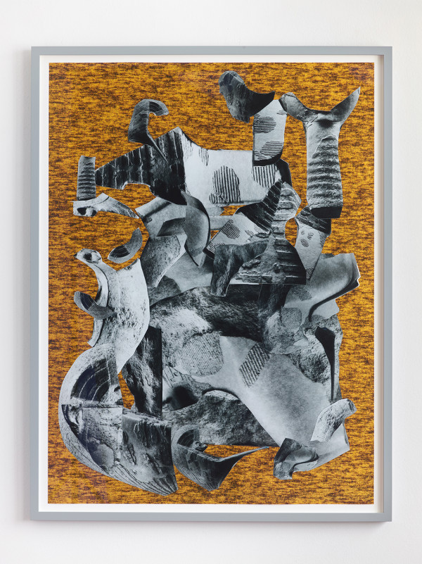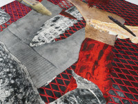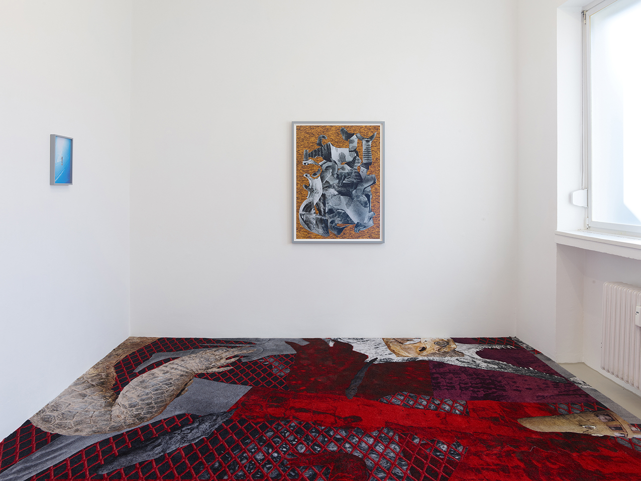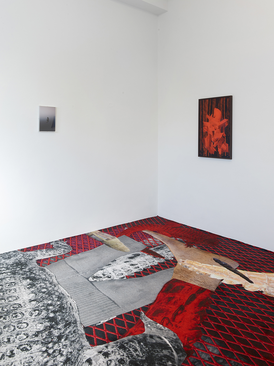 The one in the egg, 2021, photo collage on carpet, dimensions variable