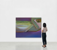 Heidi Hahn paints women’s bodies that present themselves quite differently from those of their art historical predecessors. In the exhibition Kink Odelisk the US-American painter makes critical references to the so-called Odalisques, the old-masterly portrayed concubines - nameless icons of classical painting. In this way, she continues her exploration of painting on the one hand, and the representation of female identity on the other. Characteristic here is the break, the unconventional, the “kink“ with which her 14 female protagonists incorporate the space of the canvas. The bodies have been reduced to large, round sharp-edged color fields and often no longer possess attributes that identify them with the female sex.