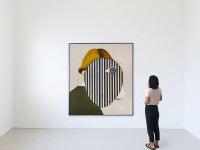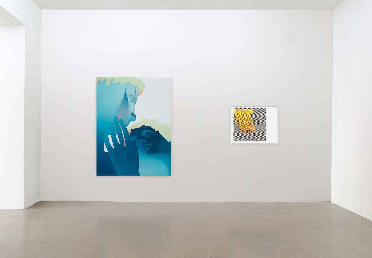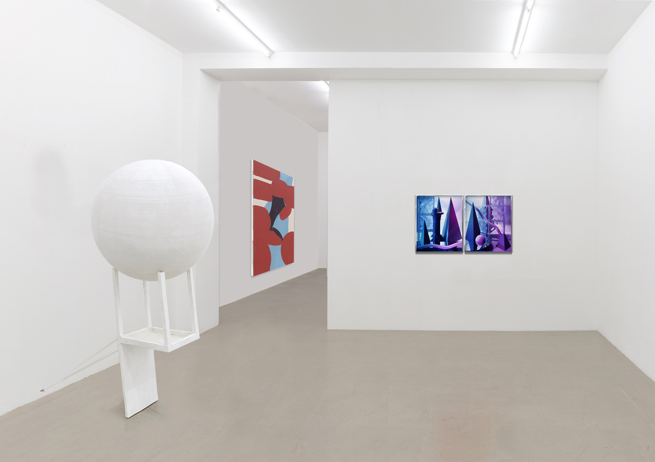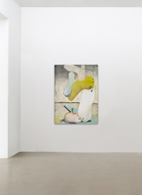 In his paintings Benedikt Hipp engages with the weighing of body and mind, aesthetics and ethics, as well as the political dimension of the individual. His new painting „Running Out Of Time“ embodies all important aspects of Benedikt Hipp´s approach to painting. Painted in a time consuming and highly elaborated working process with several layers of oil on wood „Running Out Of Time“ combine elements of Modern Abstract Painting with the the concept of a synthetical „self-design“ of our time. In a stage like setting Hipp places a combination of abstract forms with a figurative like „portrait“ that together seems to be like a new kind of being. In doing so, different notions of identity collapse into each other and open the window to an utopian and contemporary space where „eveything is possible“.