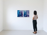 Since the 1970s, Helmut Dorner has been developing a stance toward abstract painting than one could describe using aspects of the Light and Space Movement and at the same time the objectness of Minimal Art. He was already invited to participate in the documenta X in 1997, and his works are included in museum collections such as the Centre Pompidou Paris or the Kunstmuseum Winterthur. In Dorner’s painting, light and space are central aspects that in each of his series play with the material qualities of color and the picture support. He grasps color as “factual materiality” that, depending on the light and spatial situation, can permanently alter a picture’s consistency. While Dorner’s preceding series of “oils” and “varnishes” played with the alternation of opacity and transparency, his new abstract acrylic painting forms a sort of “membrane” between innumerable layers of color that subtly shine through the visible surface and the actual ambient space—reinforced not least through the picture support made of wood that almost appears as an architectural element.