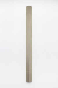 The 2-part work „Stereograph 36“ is part of the series, which she started on the occasion of her solo exhibition at the Vienna Secession in 2012. The title refers to the photographic technique of the same name. Stereography is used to create images that appear to be three-dimensional when viewed through a specific apparatus. To create such an image a motif is photographed from two slightly different angles, mimicking the individual perspective of each of the viewer‘s eyes. The spatial shift is an integral part of the technical construction of seeing and the term “camera“ derives from the Latin word for “room”. By “folding” the two parts of the work and thus creating a factual double image of the real architectural space, Liz Deschenes picks up on the idea that photography is tied to movement through space, transforming our perception.