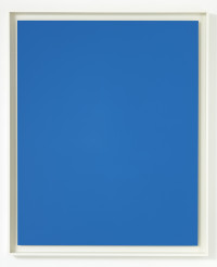 Liz Deschenes‘ Blue Wool series employs digital pigment printing to produce blue toned monochromes and explore the formal qualities of colour. Liz’ chosen colours are derived from printing industry’s Blue Wool Scale, a professional standard used to gauge the lightfastness of pigments. Works from this series were exhibited in Liz’ survey exhibition at the ICA Boston.