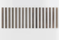 The title of Liz Deschenes‘ 30-part work „FPS (45)“ refers to the film term „frames per second“ and is directly related to the artist‘s interest in the experiments of the scientist and chronophotographer Étienne-Jules Marey (1830-1904), who developed a method of capturing sequences of movement on a single elongated photographic print by rattling a photosen- sitive film through the lens at 60 frames per second. Deschenes‘ sequentially installed photograms „FPS (45)“ translates the capture of space and time into an „embodied form“ of time in the midst of real architecture.